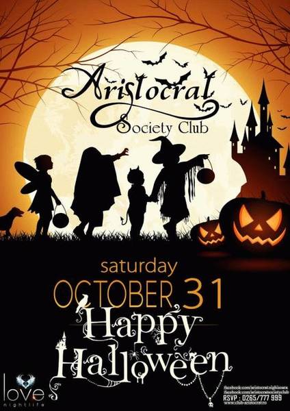 In noaptea de 31 Octombrie, ora 23:00 , ne adunam in Club Aristocrat costumati si gata de distractie. Costumeaza-te in vampir,varcolac,vrajitoare,sperietoare,etc , rezerva-ti masa si ai parte de cele mai traznite shoturi din partea clubului.