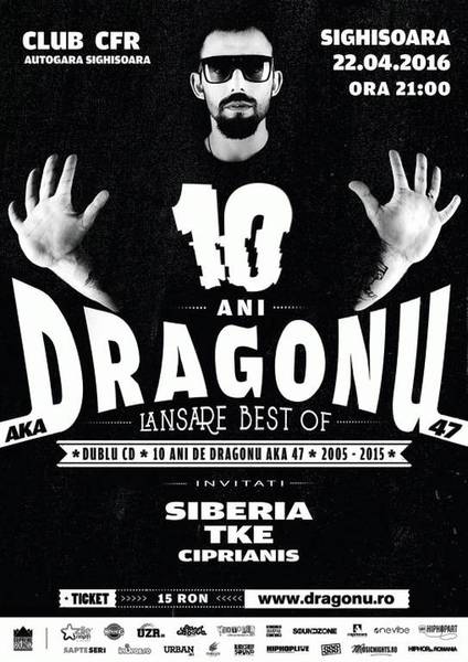 Vineri 22 Aprilie va avea loc lansarea a 10 ani de Best of... Dragonu AKA 47 (Dublu CD 2005-2015) în Club CFR din Sighisoara.