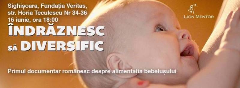 16 iunie, 2016 ora 18:00, Lion Mentor Association lansează, la nivel național, documentarul “Îndrăznesc să Diversific” – primul documentar românesc despre alimentația bebelușului în primii doi ani de viață. În Sighisoara, proiecția va avea loc la sediul Fundatiei Veritas, nr 34-36, Sighisoara, vis-a vis de Ocolul Silvic.