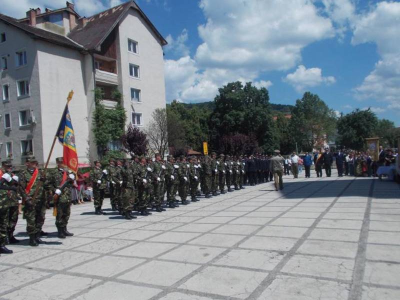 Au avut loc depuneri de coroane, o slujba religioasa, alocutiuni si defilarea trupelor militare Batalionul 72 Aparare CBRN Negru Voda si Detasamentul de Pompieri Sighisoara.