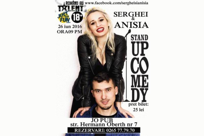 Anisia, blonda de la Romanii au Talent , o tanara comedianta, a castigat festivalul de satira si umor de la Targu Mures in dec 2013 si multe alte concursuri locale . Serghei, un tanar carismatic care se face placut prin naturalete si prin accentul lui moldovenesc, a avut succes chiar de la prima aparitie pe scena in anul 2012. Inca de cand s-au cunoscut, Serghei si Anisia au sustinut nenumarate spectacole prin toata tara si promit sa distreze publicul oriunde se duc, facand astfel reteta perfecta pentru o seara haioasa .