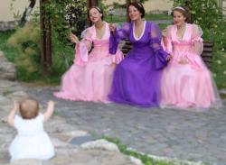 Ursitoarele au iesit la plimbare prin Cetatea Medievala din Sighisoara, insotite de un fotograf si de un cameraman care vor fi alaturi de cele trei "surori ursitoare" la botezurile la care acestea vor fi invitate.