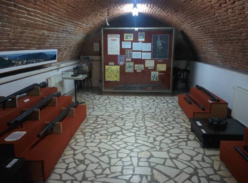 Ultima sala prezinta arme de foc (flinte, pistoale, diverse pusti), avand mecanismul de tragere cu fitil, cu cremene si cu percutor databile in secolele XVIII-XIX. Vizitatorul este atras de doua pistoale, unul prevazut cu baioneta iar celalalt un revolver (cu sase tevi). In camera este expus tabloul-portret al generalului Melas (1729-1806), realizat de Johann Martin Stock (1742-1800) . Mihael von Melas s-a nascut la Roades (langa Sighisoara) si a fost general in armata austriaca. La 1800, in batalia de la Marengo a fost invins de Napoleon Bonaparte. Semn al respectului care il purta generalului Melas, primul consul francez, printr-o scrisoare, il felicita pentru abnegatia sa militara si ii oferea o sabie capturata din Egipt. Fotocopia scrisorii in limba franceza este prezentata in expozitie, originalul aflandu-se la Viena.