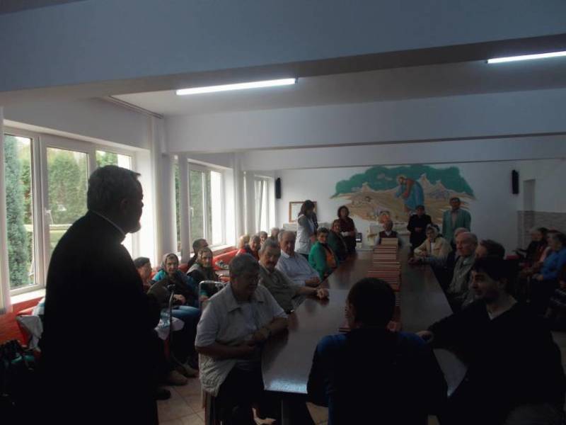 Astazi persoanele care beneficiaza de ingrijire la acest centru au primit in dar fiecare editia Noului Testament cu Psalmi, personalul centrului le-a cantat La multi ani si le-a oferit o masa de sarbatoare.