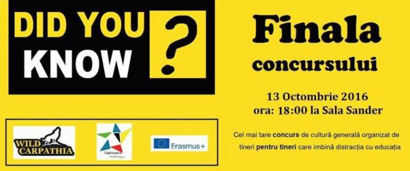 Concursul de cultură generală “DID YOU KNOW?” este o provocare pentru acei tineri interesați să lucreze în echipă și să își dezvolte cultura generală într-un mod provocator, inovativ și distractiv.