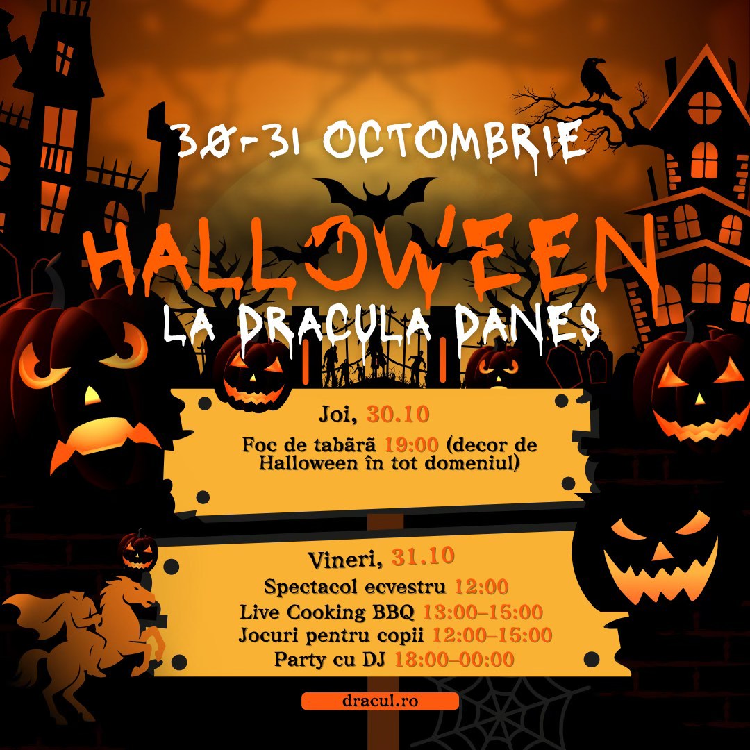 La Domeniul Dracula Daneș, pregătim un weekend vrăjit: foc de tabără, cai în lumini misterioase, live cooking, jocuri pentru cei mici și party în costume până la miezul nopții.