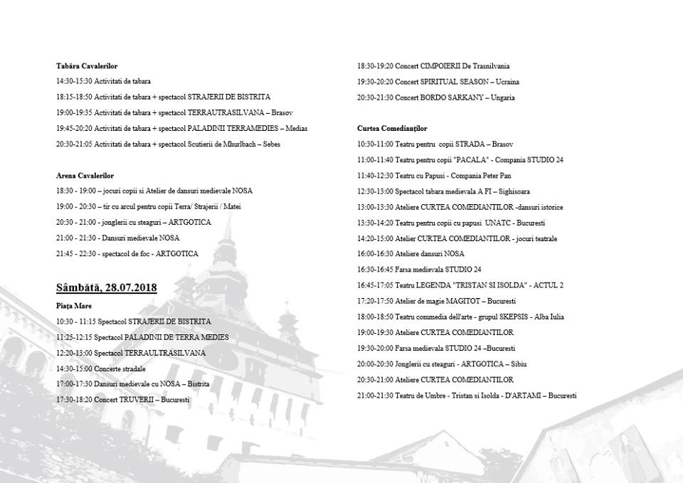Sperăm ca, în perioada 27-29 iulie 2018, participanții la cea de-a XXV-a editie a Festivalului Sighișoara Medievală să regăsească bucuria serbărilor medievale din tablourile lui Bruegel și atmosfera de la începuturile acestui festival.