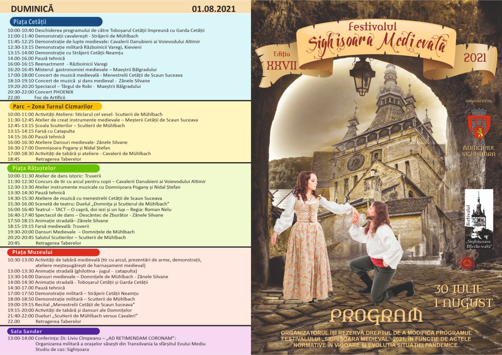 Program Festivalul Sighisoara Medievala 2021 – Sambata – 31.07.2021